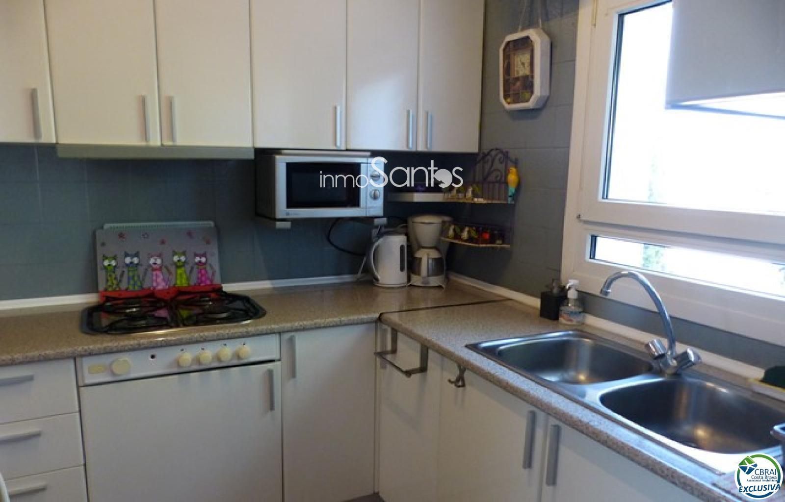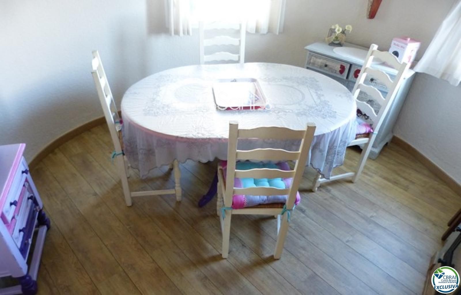 A tan sols 500 metres de la platja es troba aquest ampli i encantador apartament situat en un dels sectors més cèntrics i a la vegada tranquil d'Empuriabrava. Ocupa el primer pis d'una preciosa casa amb aproximadament 250 m2 de jardí, amb aparcament i amarri de 5 metres al canal principal . Una entrada privada condueix a l'habitatge que disposa d'un gran saló molt agradable, menjador a la torre que podria convertir-se en un dormitori si fos necessari, 2 habitacions dobles (1 amb balcó), cuina, un bany i un lavabo. L'apartament es ven sense mobles.