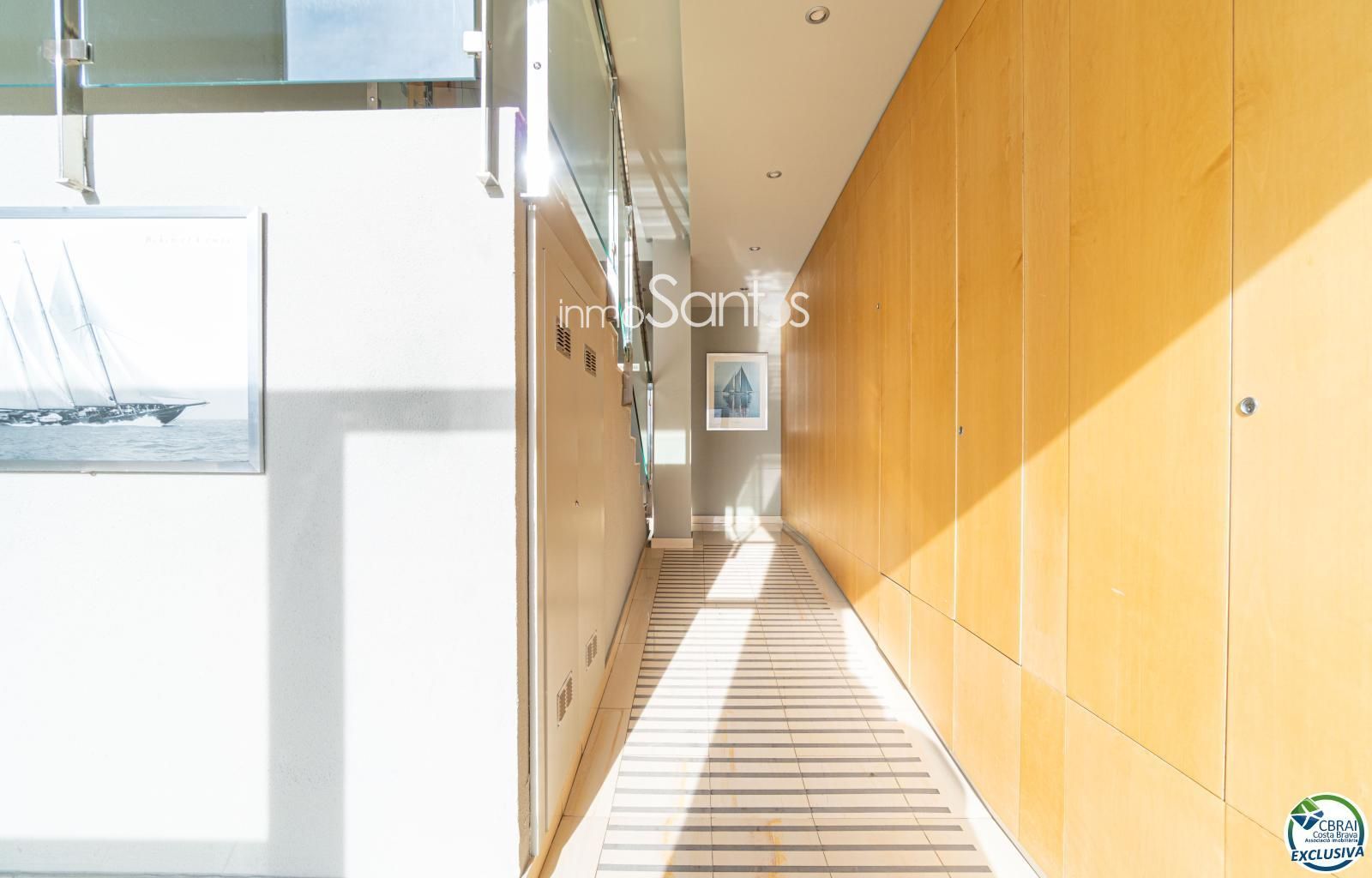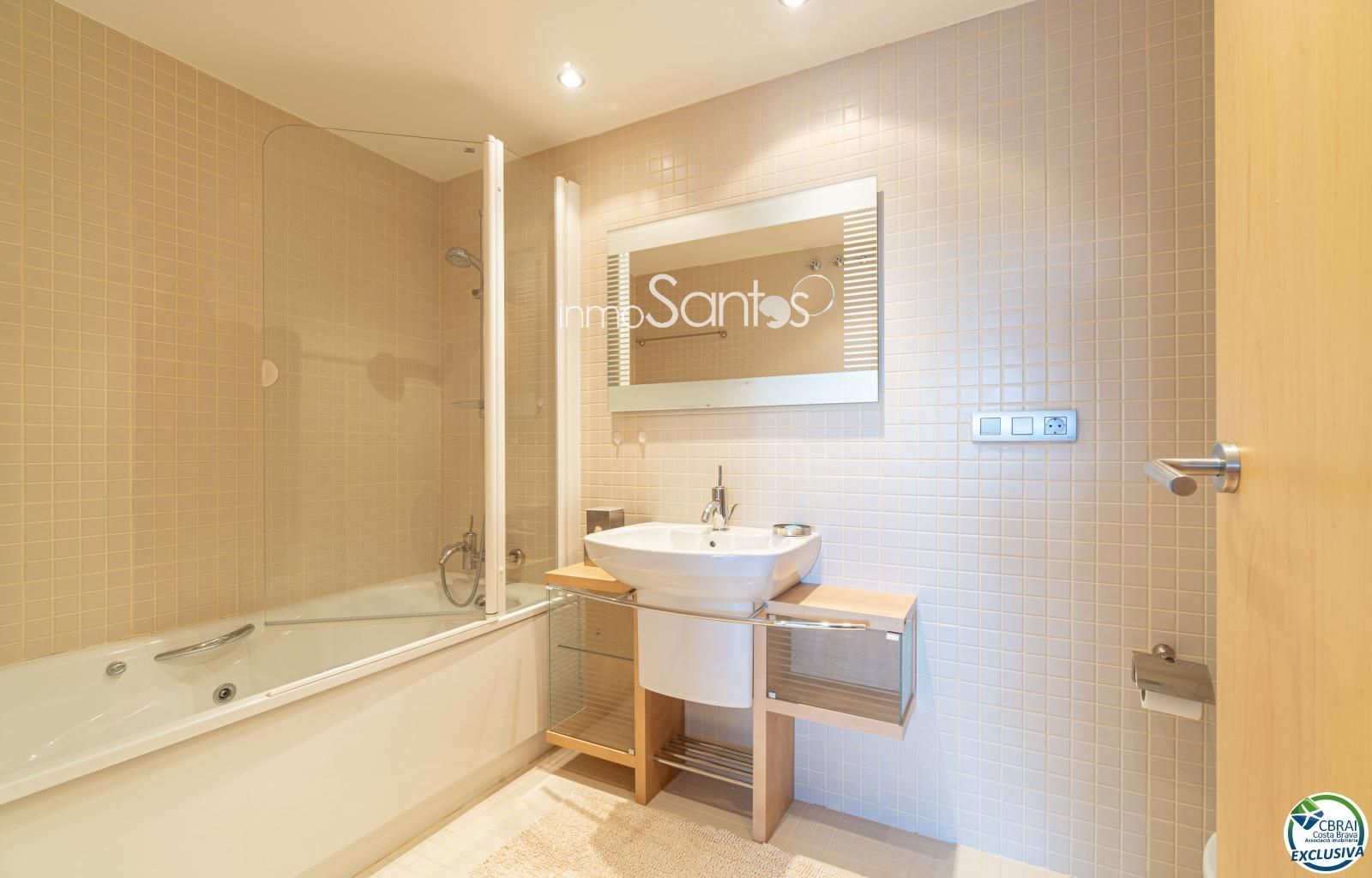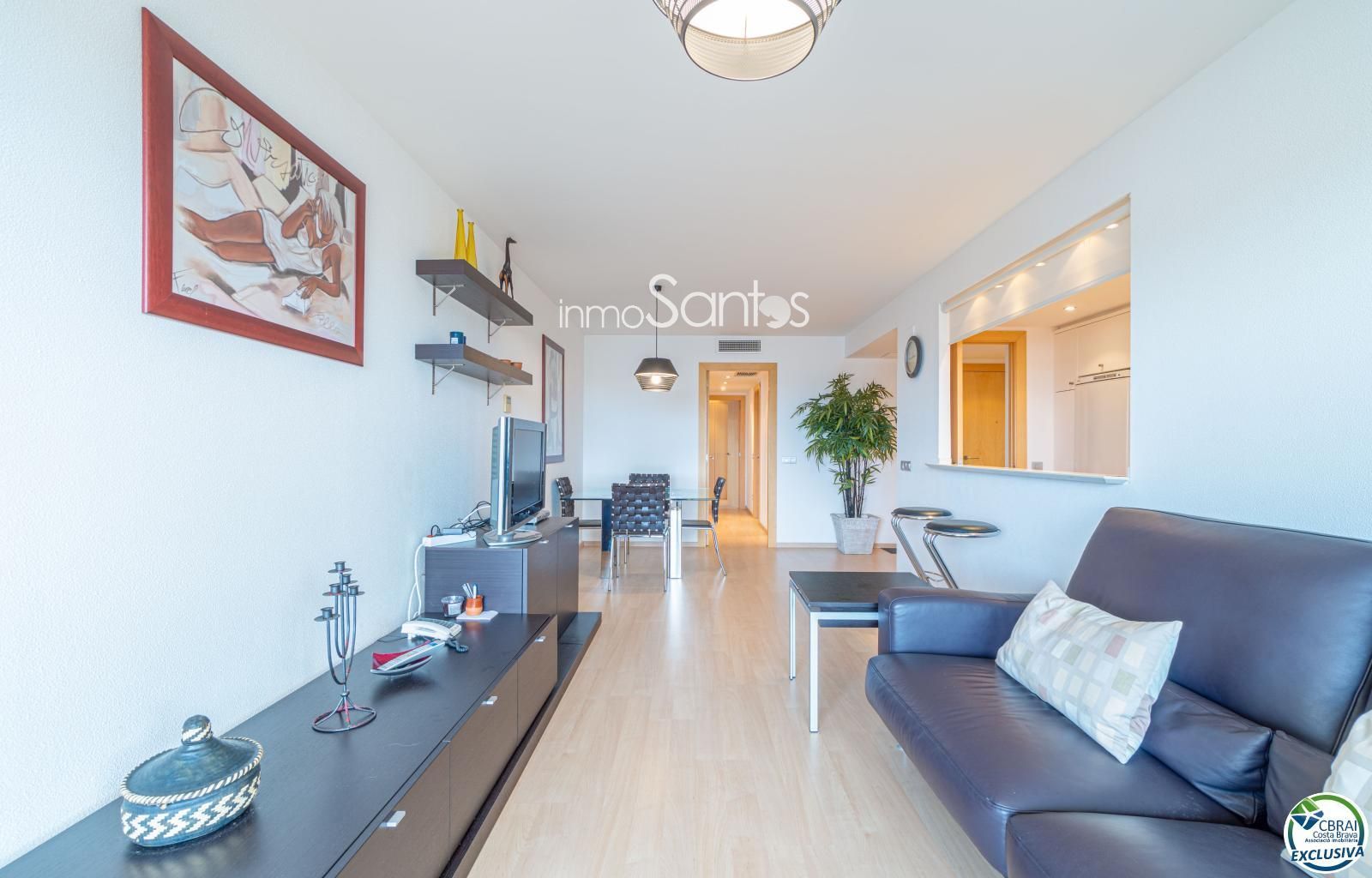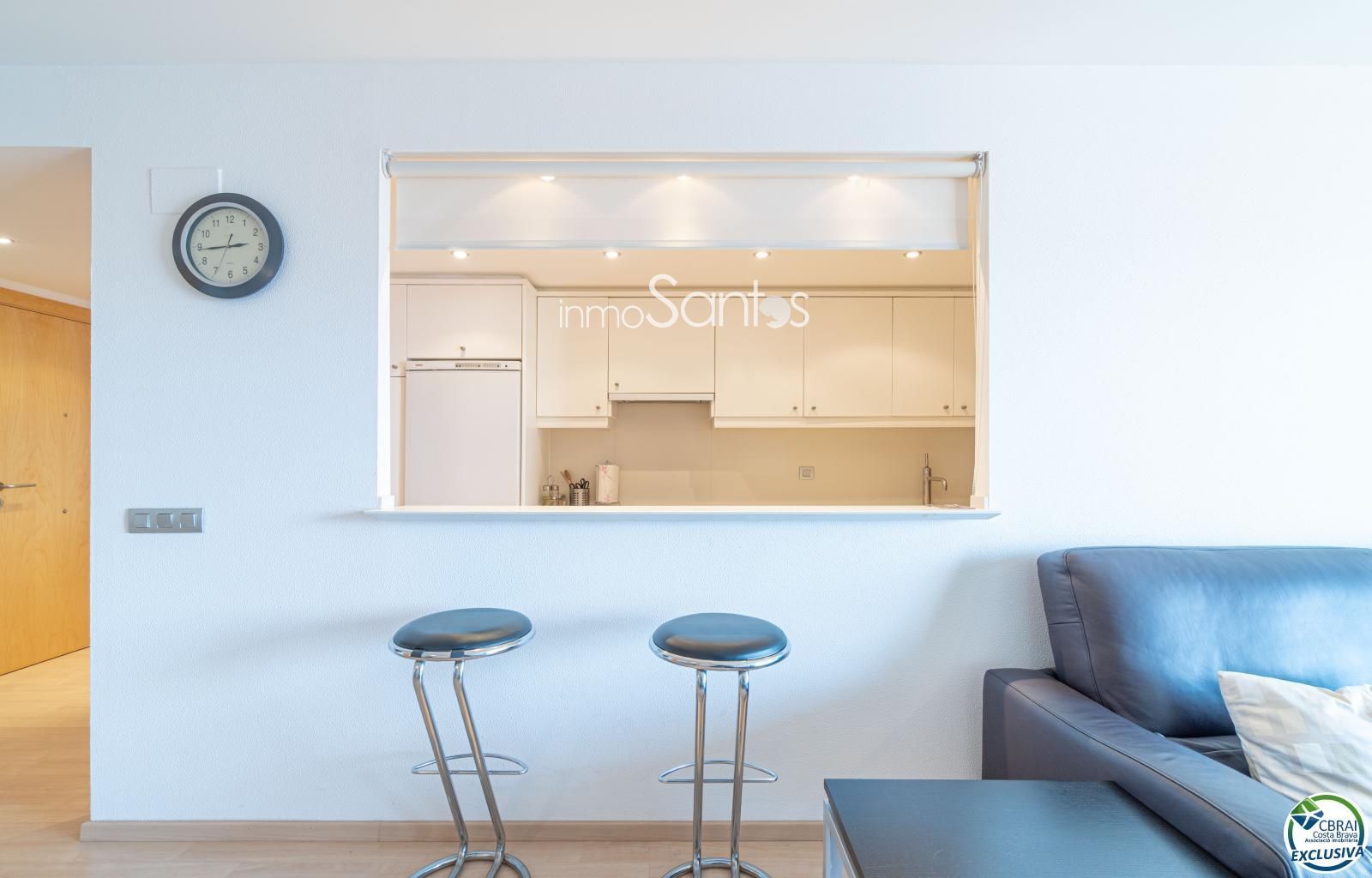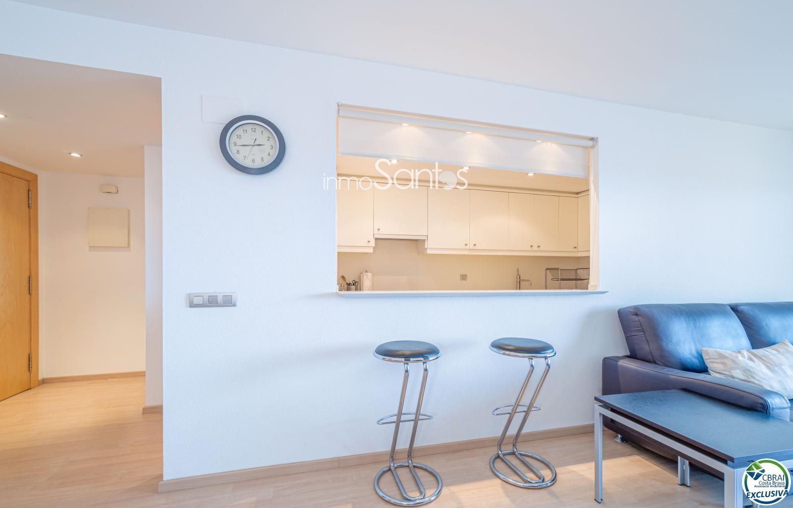 Disposa de 3 habitacions, totes amb armaris encastats, i 2 banys complets, un d’ells en suite principal. La cuina americana, moderna i totalment equipada, s’integra amb un saló ampli i molt lluminós.