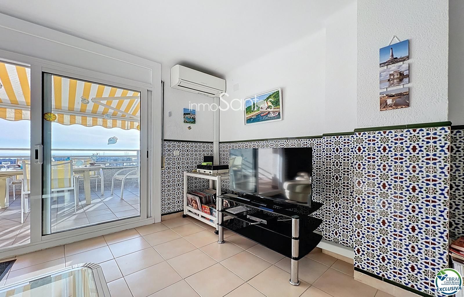 Some opportunities shape a lifetime. In the very heart of Roses, this 97 m² duplex offers an ideal layout: bedrooms on the lower level with sea views from the main room, and upstairs a bright living area opening onto an 18 m² southwest-facing terrace. The panoramic views over the port and the bay are stunning. Private double garage. Shops and beach within walking distance. A rare property on the Costa Brava.