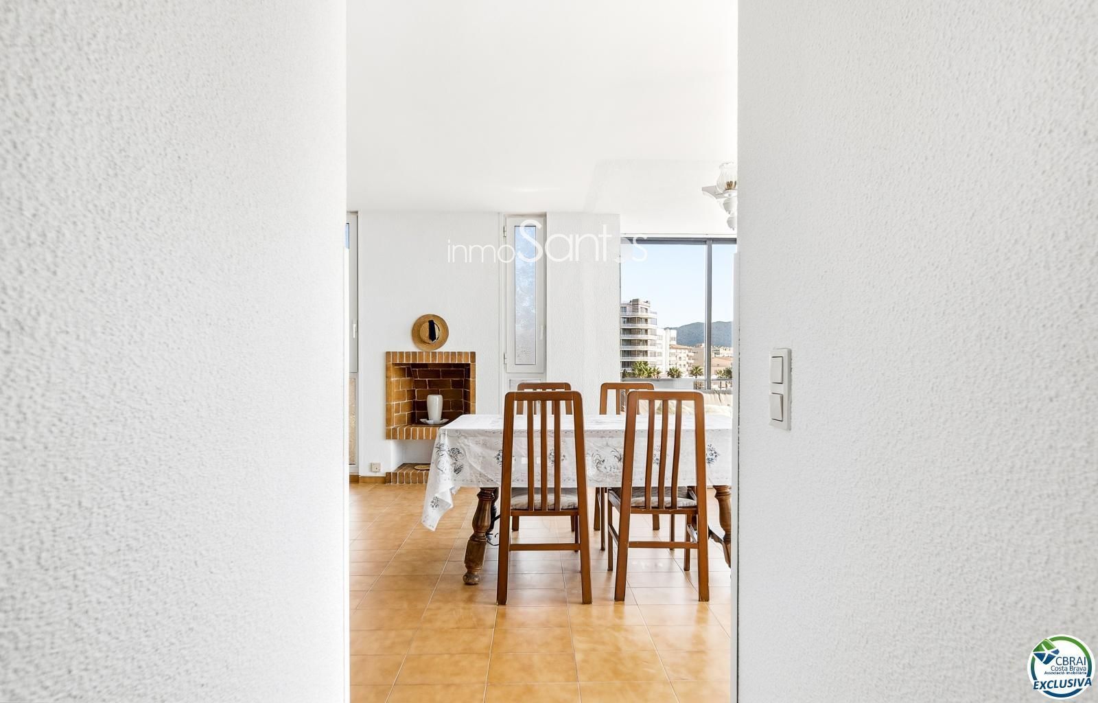 The heart of the apartment is its spacious and bright living-dining room, with large windows and sliding doors that open onto a cosy enclosed terrace, from which you can enjoy magnificent sea views.