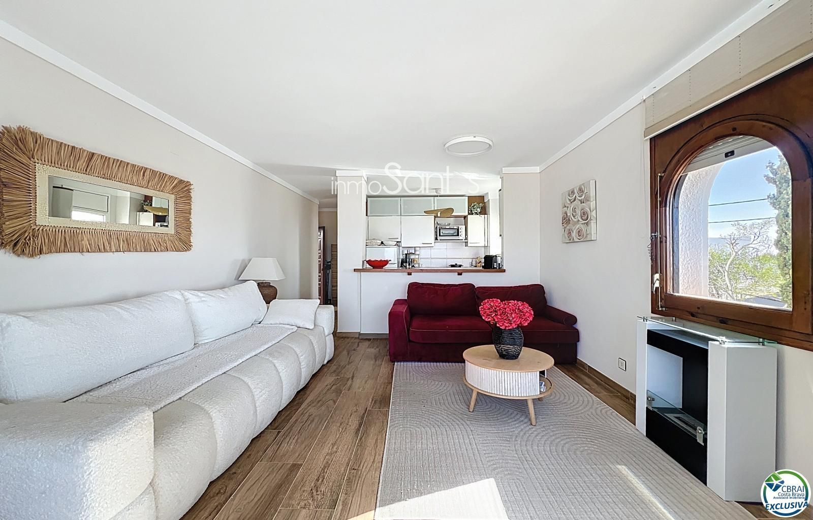 In the sought-after area of Puig Rom, this renovated 57 m² apartment located on the 1st floor of a residence with communal pool and parking stands out for its spectacular views over the entire Bay of Roses and partly over the natural park. West facing, it enjoys exceptional brightness with sea views from every room. Sold furnished, it is ideal as a second home or investment.