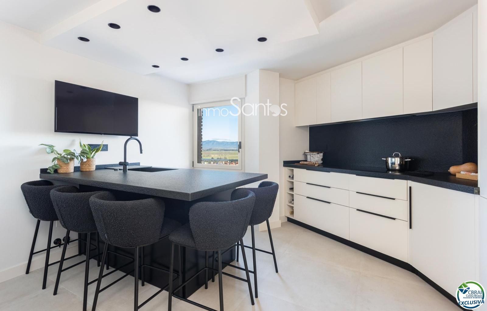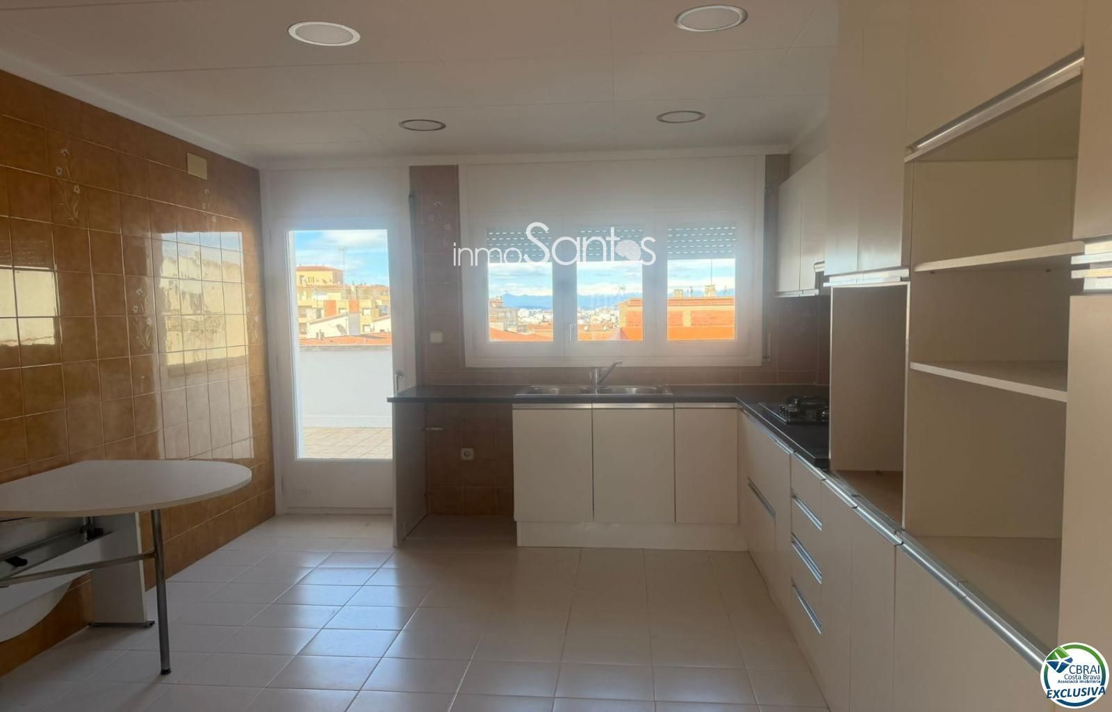 Beautiful penthouse in the heart of Roses, it has 126 m2 of floor plus 150 m2 of terrace plus 7 m2 of porch, 3 bedrooms, a full bathroom and a toilet, the residence has 4 floors, the apartment is surrounded by this beautiful terrace, there is the possibility of a parking space in the same residence.