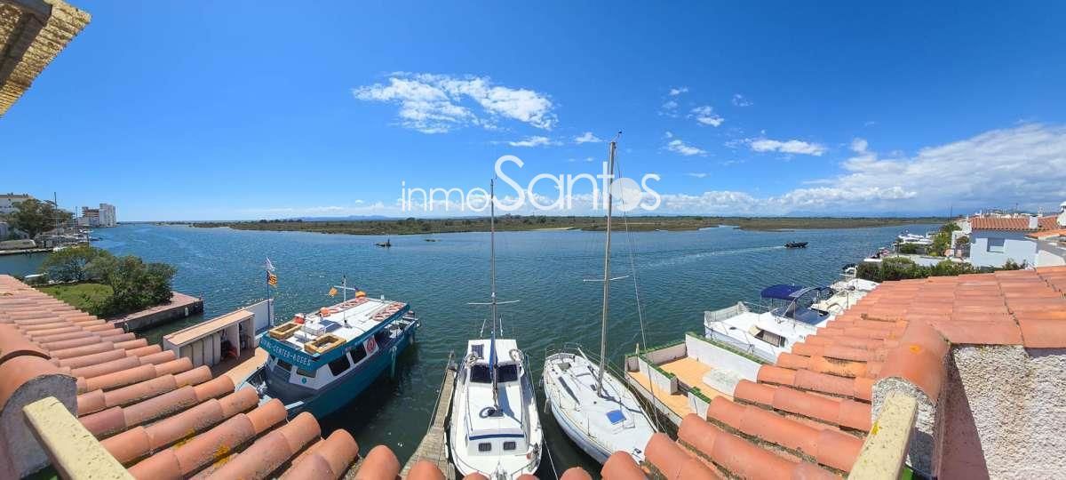 Descubre esta espectacular casa adosada en venta en Santa Margarita, Roses, situada en una ubicación privilegiada con impresionantes vistas al canal, al mar, a la playa y al Parque Natural dels Aiguamolls de l’Empordà. La propiedad dispone de un amarre privado de 10x4 metros, con posibilidad de albergar embarcaciones aún más largas, lo que la convierte en una opción ideal para los aficionados a la navegación. Con una superficie construida de 143 m², la casa ofrece 4 dormitorios amplios y 2 baños, además de un aseo en la planta baja, distribuidos en espacios luminosos y funcionales. El diseño combina con acierto elementos tradicionales, aportando carácter y personalidad a cada rincón. La zona de estar destaca por su luminosidad natural, creando un ambiente cálido y acogedor. Dispone de aire acondicionado, al igual que el dormitorio principal, lo que garantiza el confort durante todo el año. La cocina está totalmente equipada con electrodomésticos, lista para su uso. Las terrazas privadas permiten disfrutar del aire libre y de unas vistas incomparables al entorno natural, al canal y al horizonte marino. Esta propiedad es una excelente oportunidad para quienes buscan comodidad, vistas abiertas y una conexión directa con el mar y la naturaleza. Contáctanos para más información o para organizar una visita y descubrir todo lo que esta casa única tiene para ofrecer.